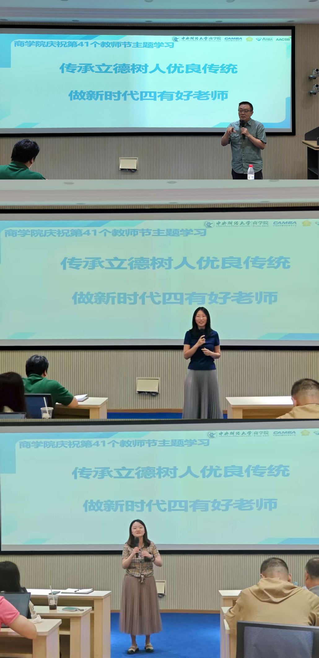 2025年9月10日下午,德赢vwin官方入口在MBA教育中心A28举行了以“传承立德树人优良传统,做新时代四有好老师”为主题的教师节学习活动。本次活动旨在通过学习德赢AC米兰官网首届“龙马奖章”获得者王巾英教授优秀事迹,激励广大教职工不忘初心,牢记使命,努力成为新时代的“四有”好老师。学院全体教职工参加学习,活动由德赢vwin官方入口副院长顾雷雷主持。