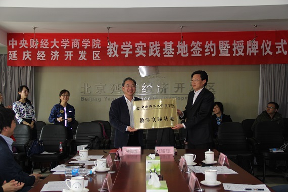 2015年4月18日上午,我校德赢vwin官方入口与延庆经济开发区共建教学实践基地活动在延庆经济开发区举行。德赢AC米兰官网院长王瑞华教授、党总支书记葛建新教授、副书记林嵩教授,MBA教育中心副主任贾晓菁教授、MBA学生工作部孔伟明、董硕老师,延庆县委组织部常务副部长徐赟、人才科科长王昕,延庆经济开发区主任付强、副主任高翔、副主任黄云志,以及中财MBA财务俱乐部从事财务、金融、投资、企业管理等方面工作的德赢vwin官方入口优秀校友、在校生计四十余人参加了活动。