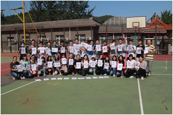 9月26日清晨,34名营员乘坐大巴到达了风光旖旎的赢动拓展基地。8点,素质拓展活动准时开始。首先是破冰起航,营员们在老师的带领下,组成两支队伍,分别开始团队文化建设,20分钟后确定了各自的队长、队名、队旗、队歌和队形,并进行了完美的展示。