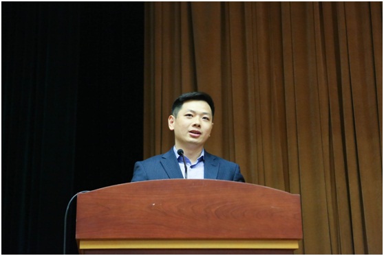 接着是教师代表朱飞教授致辞。他希望同学们都可以“live a life you will remember ”,就此他谈了一些自己的感想,朱飞教授认为同学们应该同商业变革共同成长,还应用正能量观察周围的世界,同时提高自我管理。最后,朱飞教授希望在广大师生的共同努力下可以实现学院以学生为荣、学生也以学院为荣的美好局面。