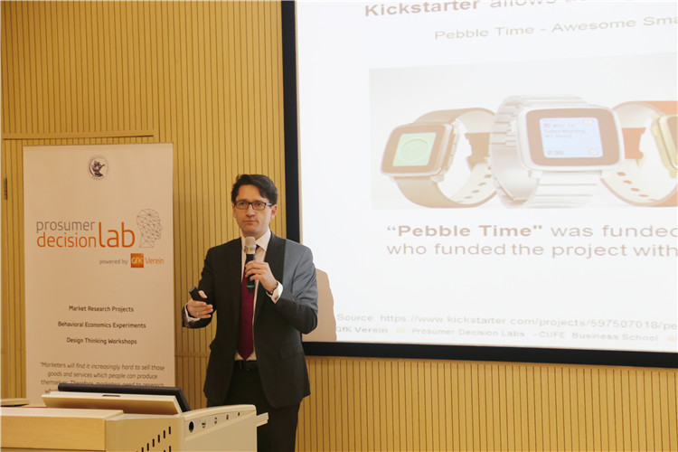 RaimundWildner副总裁、赵新宇总经理先后发表致辞,寄望于通过与中财合作打造的实验室,帮助学生更多地了解市场研究,提供一个创新的机会,共同完成更多的创新实验。最后, Andreas Neus董事总经理详细介绍了消费决策综合研究实验室的背景及情况,并在实验室向师生们现场展示了实验软件的使用。
