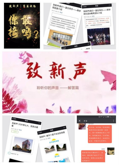致新“声”,针对17级新生推出了个性化活动——“聆听你的声音”问题征集系列专题,通过线上平台与学生、家长进行互动。活动一经推出,便吸引了大量学生、家长参与其中,纷纷通过微信平台提出问题或表达期许。德赢vwin官方入口迎新团队将相关问题分类整理,一一答疑解惑,确保新生在入校前就能深入了解校园生活。