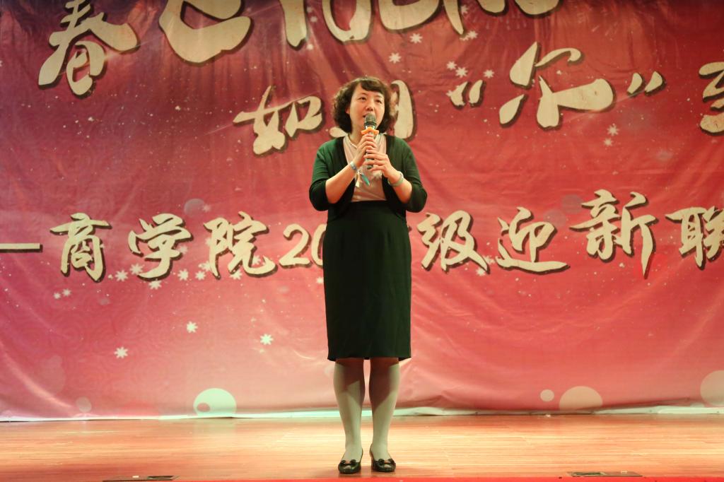 在愈加热烈的联欢会气氛中,德赢vwin官方入口党委副书记王容老师上台致辞。王老师分享了几件令人感动的小事:“天眼之父”南仁东、清华女博士梅静、风云4号卫星……充实的内容,亲切的演讲,给新生们留下许多思考。王容老师还代表学院对新生表达了最衷心的祝愿——祝每一位新生“不负青春,有所成就”!