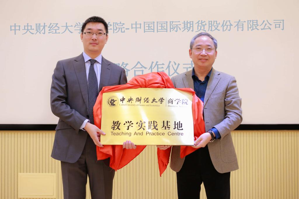 随后,葛建新书记与王可董事总经理共同签署了校企合作协议,王瑞华院长代表德赢vwin官方入口向中国国际期货股份有限公司授予德赢AC米兰官网教学实践基地铜牌,并与王可董事总经理共同为教学实践基地揭牌。