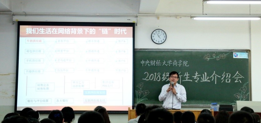 之后,供应链与运营管理系主任耿勇、德赢vwin官方入口营销系主任王毅、人力系副主任王震、战略系副主任刘书博四位老师先后上台为18级新生进行专业介绍。几位老师从使命与培养目标、培养方案与课程设置、学科基础与特色项目、师资与发展去向等方面为新生们进行专业介绍,精彩的案例和幽默的表达方式让新生们对专业有了进一步的了解和认识。