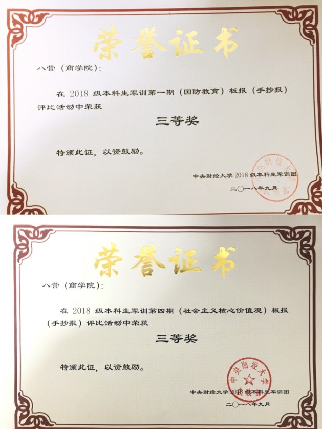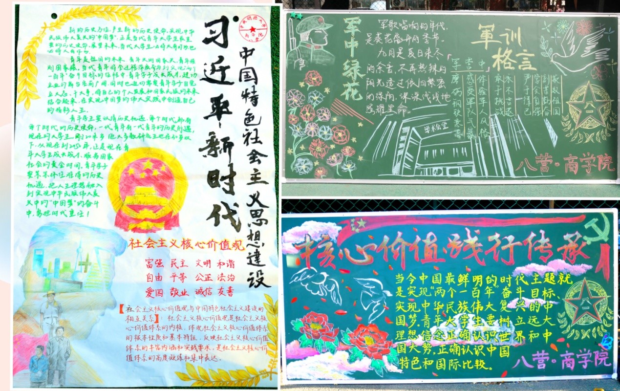 在训练之余,军训团还举行了其他丰富多彩的活动,黑板报与手抄报风采展示、拔河比赛、歌咏比赛等等,德赢vwin官方入口八营的同学们在这些活动中也取得了傲人的成绩,歌咏比赛第二名、拔河比赛第三名、黑板报三等奖。这些活动不仅能够缓解同学们训练的紧张和疲劳,还增进了同学们彼此之间的交流与合作,让德赢vwin官方入口八营变得更有凝聚力。