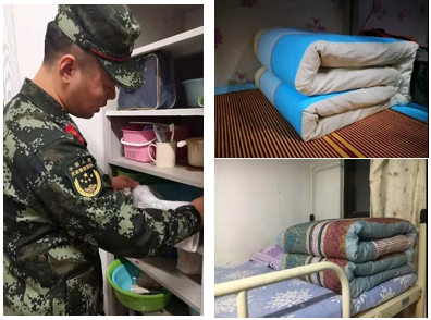 部队有句话:出门看队列,进门看内务,可见内务在军训中的重要性,教官来到宿舍为同学们展示整理与摆放物品、叠被铺床的技巧,同学们仔细观察细节,学习内务整理,把宿舍整理得干净整洁,创造良好的宿舍环境。在军训期间共进行了两次内务评比,在全体同学的努力下,德赢vwin官方入口八营两次内务评比均获得一等奖,并被评为内务标兵营。