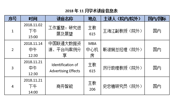 2018年11月,我院教师积极邀请海内外知名学者来校举办讲座,加强内外部学术交流。