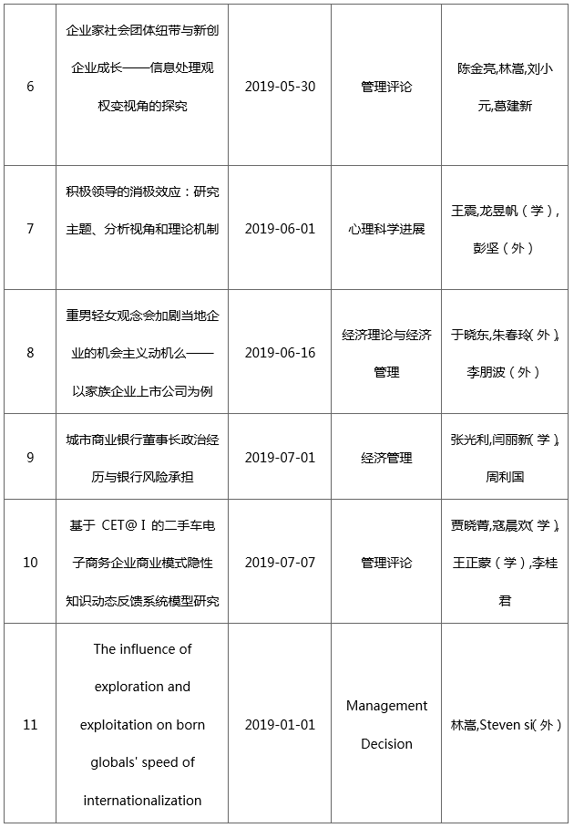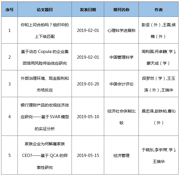 2019年以来,德赢vwin官方入口以“双一流”学科建设为科研导向,鼓励学院教师关注管理学前沿问题,积极投入科研工作,取得了丰富的科研成果。