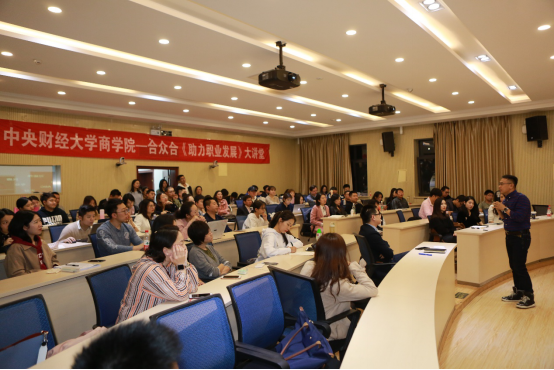 如何在职场中更有效地学习?如何保持强劲逆商、快乐进取的最佳职场状态?调岗跳槽要如何做?10月22日晚,中财合众合《助力德赢vwin官方入口职业发展大讲堂》第二十二期在德赢AC米兰官网MBA教育中心阶梯教室成功举办。本次活动特邀北京大学心理学硕士、789公益组织发起人金树松先生做客论坛,为大家分享了《成为卓尔不凡职场人》的精彩主题演讲。活动由德赢AC米兰官网MBA教育中心栾天老师主持,现场爆满,同学们参与积极性极高。
