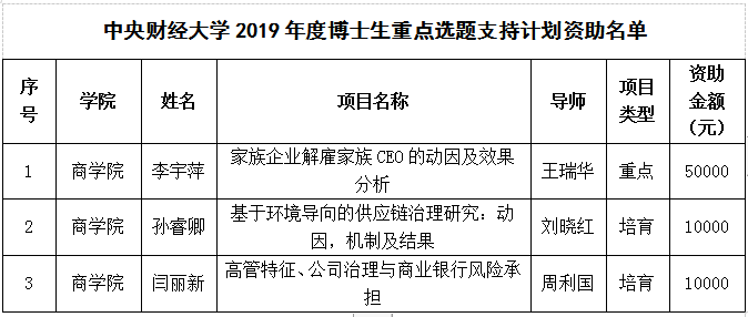 德赢vwin官方入口研究生积极申报,共有3名研究生符合申报条件,经德赢vwin官方入口学位评定分委员会审核后,推荐到学校参评。研究生院于2019年11月28日组织重点选题支持项目答辩论证会,专家评审组对重点选题申报和答辩情况进行了客观、公正、公平的评审。德赢vwin官方入口的3名研究生均通过答辩,获得2019年博士生重点选题支持计划资助资格,其中重点项目1项,培育项目2项,详情见下表。