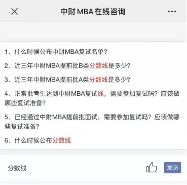 考生通过关注我校MBA项目的微信公众号“中财MBA”,进入微信公众号,点击菜单栏“在线咨询”即可与MBA智能咨询机器人进行24小时咨询,如果遇到MBA机器人无法回答的问题,可以选择“留言“方式通过给招生老师留言进行相关问题咨询。权威调查表明,响应速度和问题一次解决率是影响咨询满意度的关键,MBA教育中心的工作人员结合以往考生咨询的经验,通过前期头脑风暴、模拟对话、全面联想等大量工作,对智能咨询机器人问答进行了有效的训练,使得广大考生可以通过网页、手机app、微信等与智能咨询机器人进行即时聊天,考生问题都可以得到极速响应和快速解决。同时,除了传统的打电话和文本消息,智能咨询机器人还支持语音、图片、文字和表情等方式,使得考生的交流多样化,帮助考生咨询的问题得到高效满意的解决。研究生初试成绩发布后,截至2月21日晚20点,中财MBA智能咨询机器人一天内累计接待考生咨询总对话量1113人次,解决率95.42%,考生提问量1688人次,留言人工解决51人次,满意率达100%,顺利承担起考生的各类复试咨询工作,并得到广大考生的一致好评和认可。