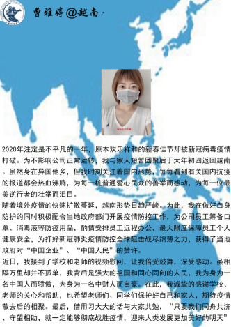 这个春天的特别经历,让同学们看到了“团结的力量”,感受到了祖国“众志成城”汇聚而成的无比强大的向心力。德赢vwin官方入口将竭诚做好各项服务工作,静待海外学子平安归来!