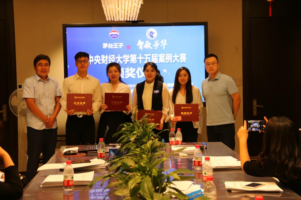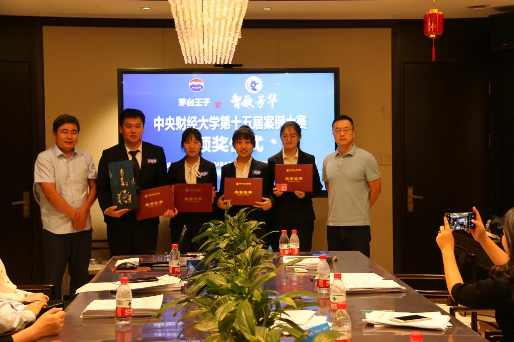 接下来,进入案例大赛的颁奖环节,获得此次案例大赛冠军的是乘风破浪喝茅台队(队员:胡天慧、安伦、曹立青、郭文宇)、亚军杯酒歌“茅”队(队员:张楚晗、鹿凯、赵曌、张乐彦)、季军人间小茅台队(队员:姜同园、林好、方杨、晏童舒)、最具商业潜力奖东方英才--绝世独立队(队员:曹冬冬、安芳、刘慧颖、张彩侠)、最具创意奖七心协力队(队员:赵文、从文、郝欣欣、刘文君)、最佳团队奖你的茅台我来干队(队员:李政辰、刘镏、姜彤、岳昊楠)、优秀奖将进酒队(队员:胡东、陈尧、陈苇杭、白文暄)、优秀奖学院南路39#队(队员:高源、刘洋、王旖琳、胡佳慧)、最佳表现个人奖郝欣欣、姜同园、鹿凯同学。