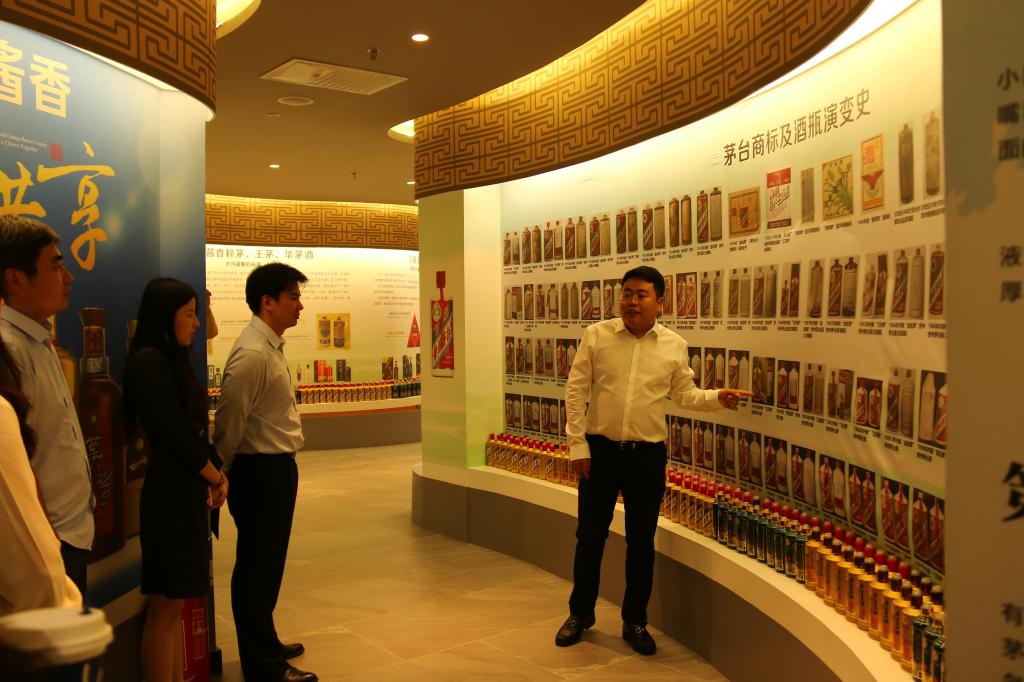案例展示、互动答辩以及颁奖环节过后,贵州茅台酱香酒营销有限公司北京省区副经理张峻玮经理带领全部参赛人员参观了茅台集团展示厅,为大家详细介绍了国酒茅台悠久的酱香历史,解释了为何“离了茅台镇酿不出茅台酒”,向同行的老师和评委们介绍了茅台系列酒的品牌营销战略,以及品牌背后的故事,大家在参观过程中对茅台酒有了更加全面立体的了解。