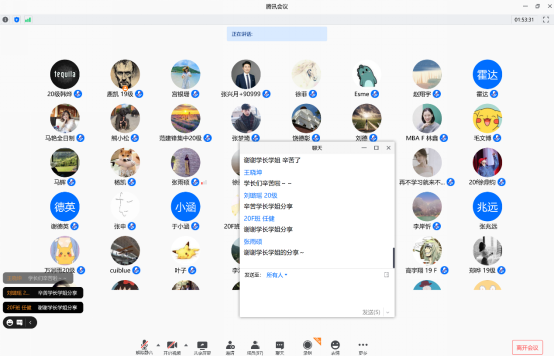 最后是19级的潘家彬学长为新生介绍一系列的MBA学习要求与相关注意事项,主要说明了班级类型,请假流程,如何免修以及教室申请等与新生学习息息相关的内容,新生认真收听并留言感谢。
