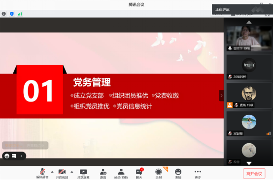 郭文宇学姐为新生介绍了德赢vwin官方入口MBA学生党支部情况,从党务管理、党建活动与研究生党支部书记联席会三方面给与新生详细介绍,同时鼓励大家积极加入党支部,为中财MBA的党建工作贡献力量。
