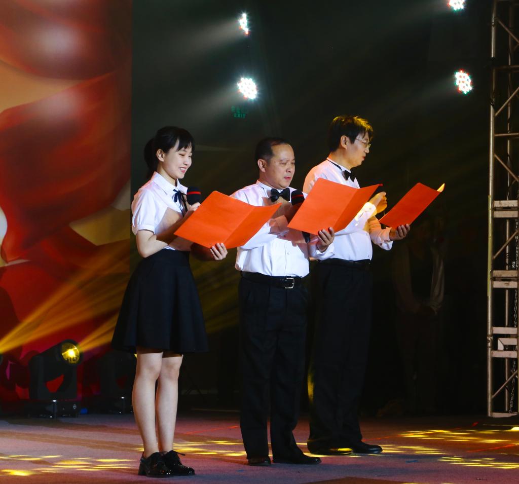 朗诵:(左起)19级本科生张慕凡、德赢vwin官方入口分工会主席周利国、市场营销系教授苗月新