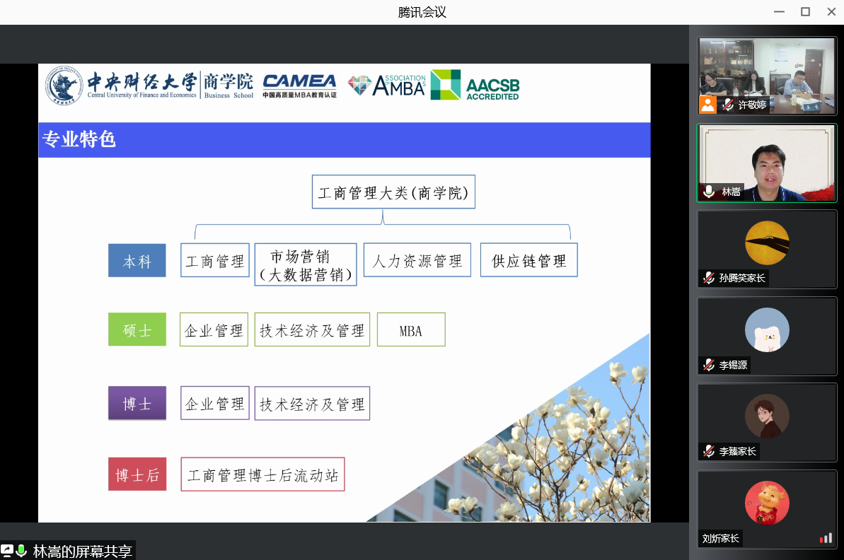 葛建新书记在会议总结时指出,立德树人是高校人才培养的核心工作,学院在知识传授、能力培养、价值塑造等方面制定了相应的方案,努力为学生成长提供更高、更广阔的平台,并力图通过多种渠道和方式向家长、学生以及社会传递相关信息,此次“龙马商音·共话成长”线上会议就是一次探索,期待汇聚各方力量,全方位育人。人才不是工业产品,教育不是工业流水线,学院尊重每一个学生的选择,希望家长们利用暑假时间和孩子多交流沟通,共同规划,帮助学生明确个人发展目标。葛书记也提醒学生们从假期里做家务开始,学会承担家庭责任。