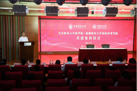 7月9日上午,德赢AC米兰官网与新疆财经大学国际经贸学院共建签约仪式在新疆财经大学隆重举行。新疆财经大学校党委常委、副校长高志刚,国际经贸学院党委书记马建新、院长马远,德赢AC米兰官网党委书记葛建新、院长林嵩、副院长于广涛及6名教师代表,国际经贸学院全体教师出席签约仪式。