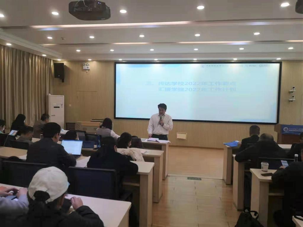 林嵩院长向全体教职工传达了校长王瑶琪在工作布置会上的讲话、学校2022年度工作要点,向全体老师报告了学院2022年工作计划。
