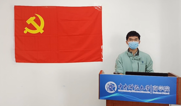新疆财经大学国际经贸学院本科生第一党支部的罗丞基同学以“在平凡中成长”为题开始分享。他讲到志愿服务贯穿着他的大学生活,从负责核酸检测点位开始成长到可以负责全院师生核酸检测工作,并讲述了自己与同学在校内外抗疫、家乡支教等活动中担任志愿者的经历,分享他们为身边人服务的实际。在一次次的志愿服务中,他感受到为身边同学奉献是一件幸福的事情。他们在看似平凡的志愿服务中贡献爱心,在看似简单的工作中谱写着时代青年的不平凡。