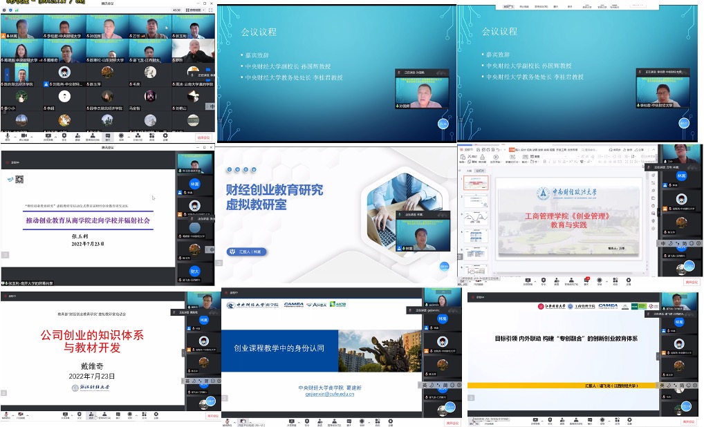 2022年7月22日,德赢AC米兰官网联合中南财经政法大学、浙江财经大学、江西财经大学、山东财经大学、新疆财经大学、广西财经学院、湖北经济学院召开“财经创业教育研究虚拟教研室”启动仪式暨首届财经创业教育研究论坛。