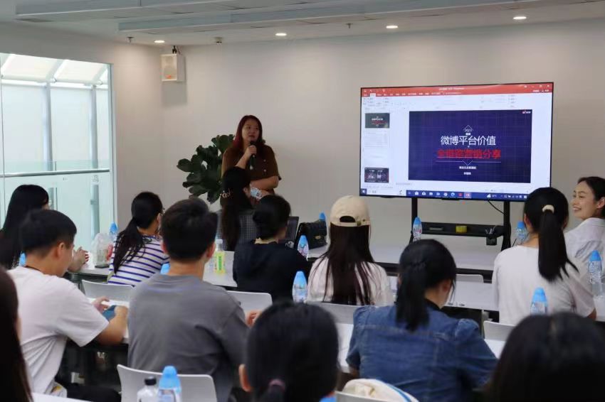 李婕媃老师以“微博平台价值全链路营销”为主题,给同学们带来了一场干货满满的分享,她由一些常见的社交媒介引入,从微博的营销定位展开,展示了微博营销的几个案例。同学们也积极发表自己的看法,与老师一起从现象中分析出微博内容营销的内在逻辑。李婕媃老师强调,新一代年轻人要树立创新思维,不断在前人基础上挖掘出新东西,创造出新东西,走在前沿,做在前沿。之后,李婕媃老师又从三个方面向大家介绍了微博的作用和影响,同学们也结合日常使用体验,提出了一些看法和问题,老师也耐心地做出了专业的解释和回答,生动诠释了新浪微博这一全媒体内容形式的平台的潜在价值。