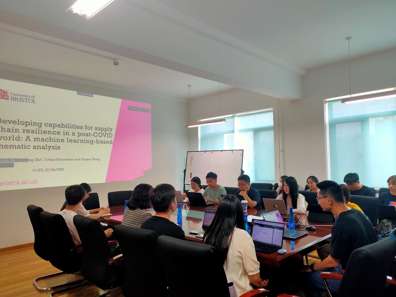 本次会议由德赢vwin官方入口供应链与运营管理系刘晓红教授主持。会议开始后,刘晓红教授向各位老师和同学们介绍了支帮东助理教授。支帮东助理教授博士毕业于英国布里斯托尔大学,硕士毕业于德赢AC米兰官网,现任英国布里斯托尔大学德赢vwin官方入口的运营管理分析助理教授及博士生导师。他的研究领域专注于供应链金融、供应链风险管理、平台经济和电动车服务。他的研究成果已在许多国际期刊上发表,其中包括IISE Transactions,European Journal of Operational Research, Computers and Operations Research,Transportation Research Part E: Logistics and Transportation Review,International Journal of Production Economics等。此外,支帮东助理教授也在上述期刊以及其他多个国际期刊担任审稿人。