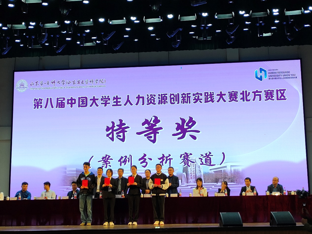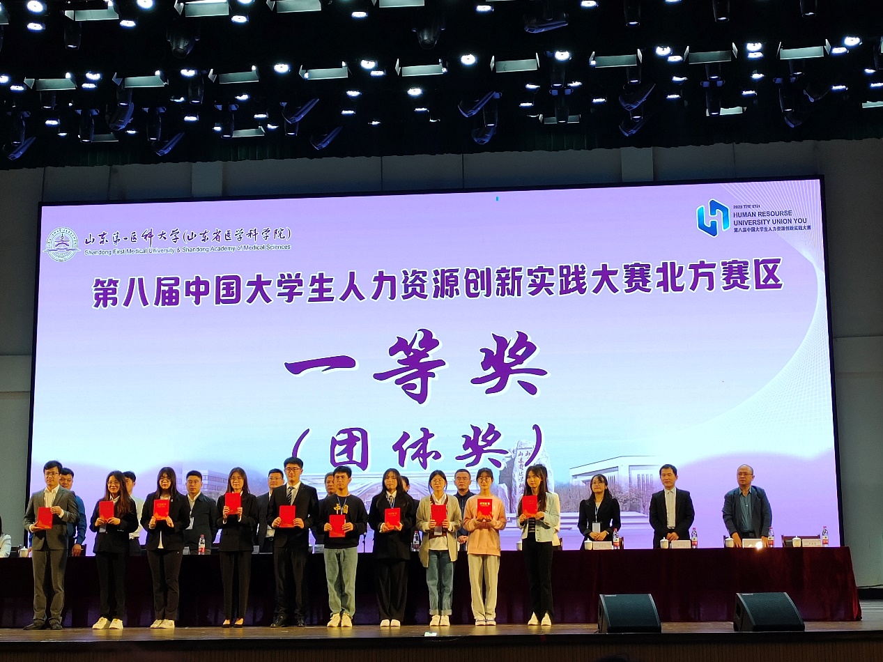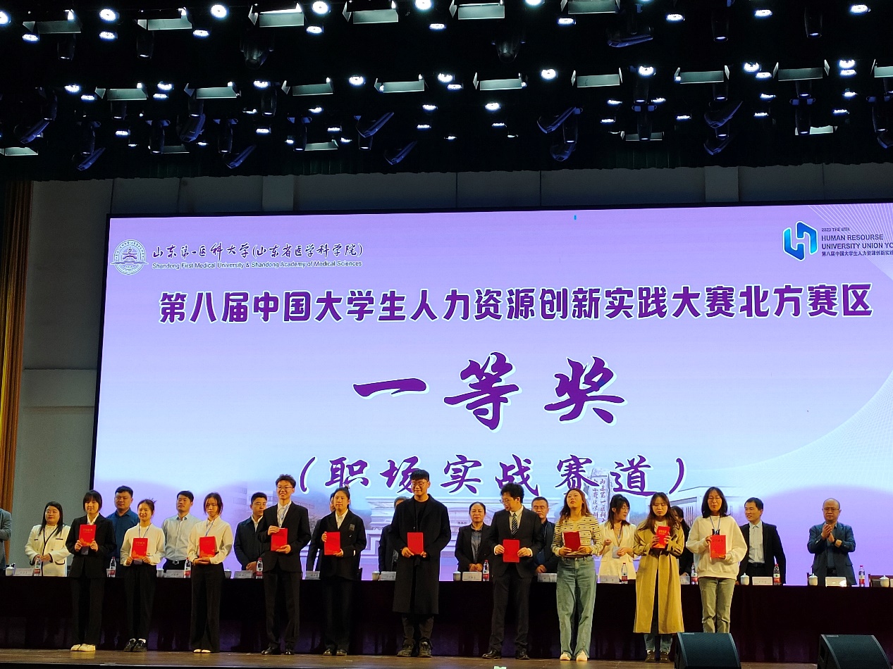 2023年10月14至15日,第八届中国大学生人力资源创新实践大赛北方区赛在泰安举行,由德赢AC米兰官网组织与人力资源管理系张宏宇老师、嵇月婷老师、左玉涵老师指导,2021级孟瑾瑜、曾心、周逸遥、何雯博、董沛宇,2022级张艳梅、陈依、邹阳、李亦雯、钱秭涵组建的德赢AC米兰官网代表队喜获团体一等奖,并成功晋级全国总决赛。