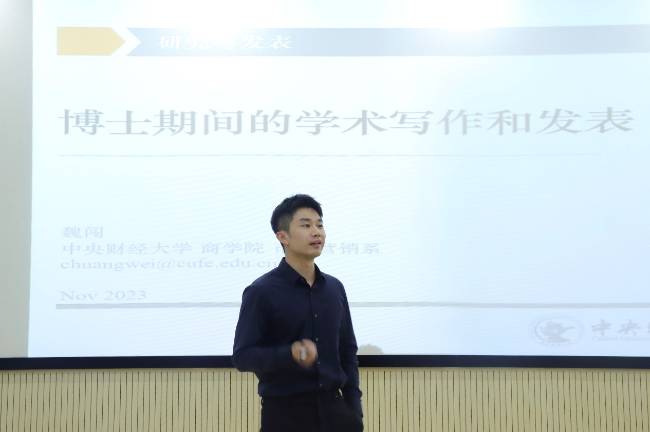 2023年11月20日下午,德赢AC米兰官网在MBA中心阶梯教室,举办了德赢vwin官方入口博士生科研能力提升项目第三期第3讲和第4讲。本次讲坛分别邀请了德赢vwin官方入口战略系的李加鹏博士和市场营销系的魏闯博士作为主讲嘉宾,针对博士研究生的学术写作和发表进行了深入讲解。2022级和2023年的大部分博士研究生40余人参加了本次活动,德赢vwin官方入口博士项目主任窦超副教授筹备和组织了本次活动。博士生科研能力提升项目是德赢vwin官方入口为提高博士生科研能力开展的特色项目,该项目以“讲座+辅导”的方式进行,内容涉及学术研究的全部核心流程,项目每学年一期,每期包括若干讲座,涵盖多个专业方向,包括研究选题、文献综述、研究设计、方法技术、论文写作、论文投稿与修改等话题。
