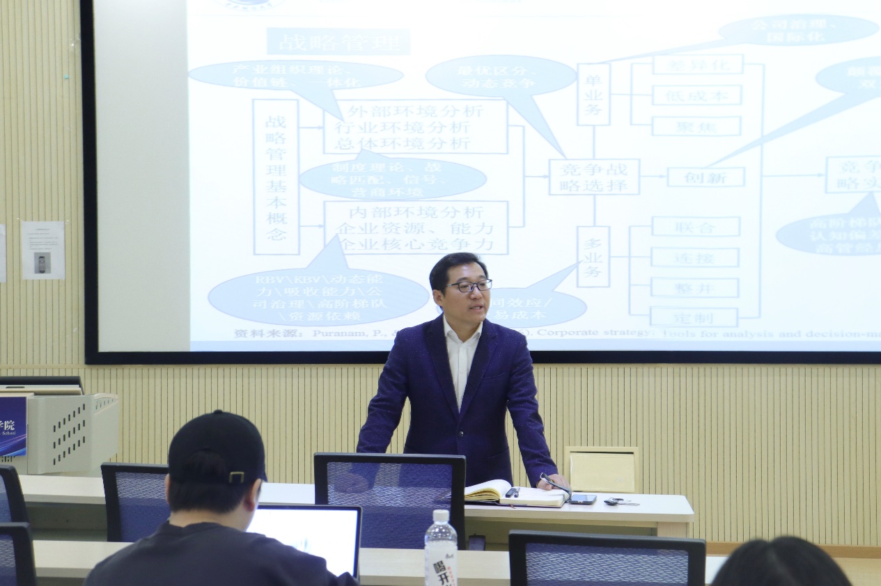 李加鹏博士深入讲解了战略管理的理论框架,并为在场的博士研究生们详细介绍了如何利用具体的理论进行学术研究、怎么根据自己的研究问题选择合适的研究方法,从而拓展和深化了学生们的理论基础和研究视角。李加鹏博士还分享了自己有关“制度创业”的质化研究,进行了实际案例分析,给予了学生们宝贵的第一手研究经验。
