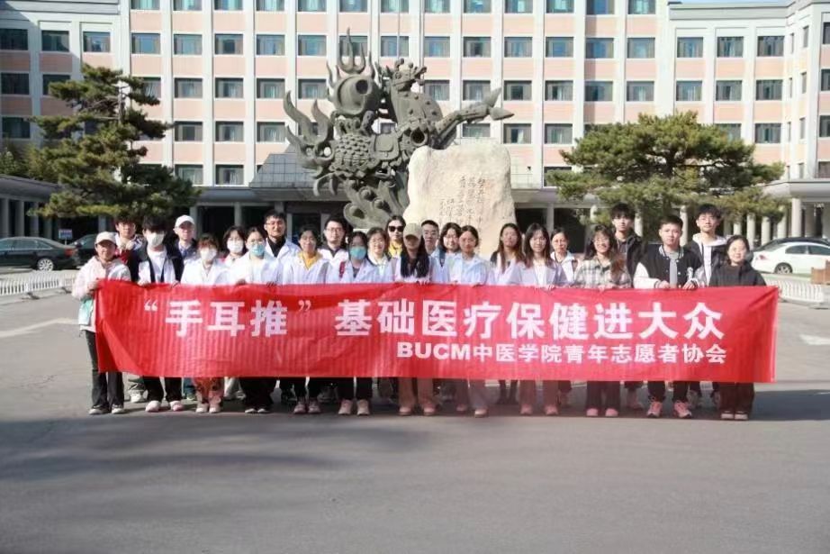 BUCM中医学院青年志愿者协会(简称“青协”)成立于2020年,秉承“新的起点,绿的希望”与“爱如微光,星火辉煌”的初衷,遵循“爱心献社会,真情暖人心,矢志服务成就美丽人生”的志愿宣言,是一个崭新的、充满活力的大集体。协会志愿者成员主要为在校中医学专业大学生,主要进行的志愿活动有:开展基础医疗健康服务、医院导诊、中医药文化进校园、中医药文化进社区、养老院中医药文化陪伴等常规特色志愿服务活动。