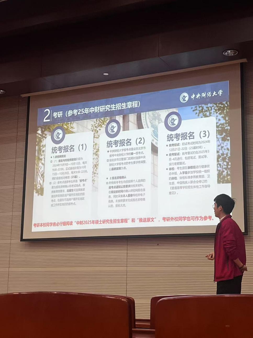 本学期是2023级本科生专业分流后的第一个学期,新班级的首次会议上,辅导员张辉老师以“聚焦分流,专业赋能”为核心,邀请各专业班主任老师和班级工作助理,通过同学见面会、班委换届、保研政策解读、专业经验分享等环节,强化学生与专业的衔接意识,引导学生全面发展,并给同学们提供详细的学习经验分享,打破同学们对专业的模糊认知,让发展路径从抽象概念落地为可操作的成长地图。