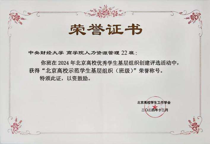 “无论过去、现在还是未来,中国青年始终是实现中华民族伟大复兴的先锋力量!”“当代中国青年是与新时代同向同行、共同前进的一代,生逢盛世,肩负重任。”在教育改革浪潮奔涌、基层组织建设蔚然成风的时代画卷中,德赢AC米兰官网人力资源管理22班以凌云之志、破竹之势,于群雄逐鹿中摘得“北京高校示范学生基层组织”的桂冠,并荣获德赢AC米兰官网2023-2024年度“双优班集体”称号。此双誉加冕,不仅镌刻着班级的卓越足迹,更彰显了新时代青年学子踔厉奋发、挺膺担当的精神图腾。