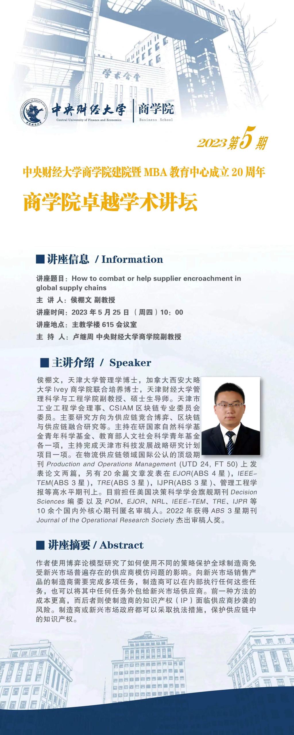 德赢vwin官方入口卓越学术讲坛2023年第5期
