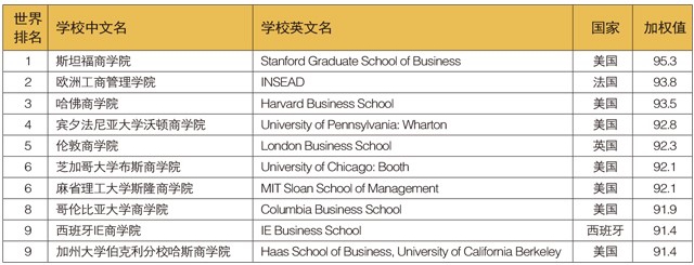 2018年《世界MBA100强》前10名单