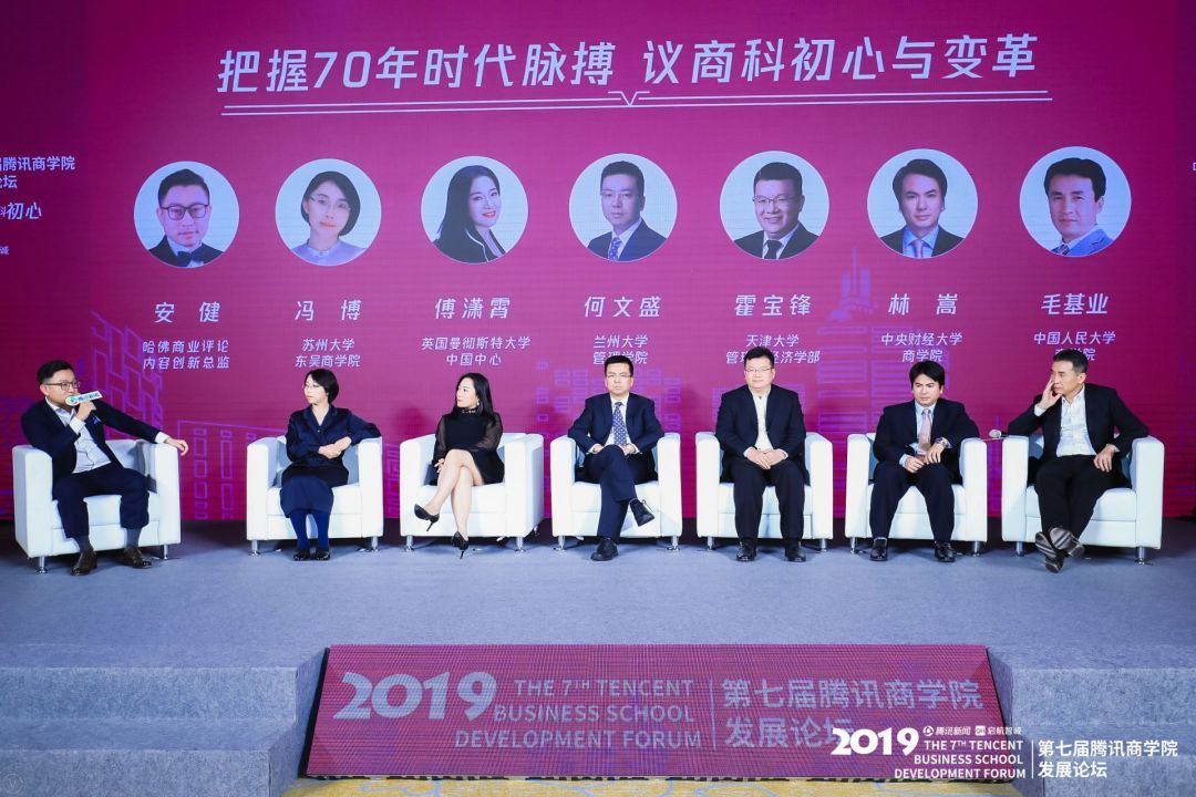 在高峰对话环节,哈佛商业评论内容创新总监安健与我校德赢vwin官方入口院长林嵩,以及苏州大学东吴德赢vwin官方入口院长冯博、曼彻斯特大学国际教育中心中国区总裁傅潇霄、兰州大学管理学院院长何文盛、天津大学管理与经济学部主任霍宝锋、中国人民大学德赢vwin官方入口院长毛基业等就“把握70年时代脉搏,议商科初心与变革”展开了深入的探讨。