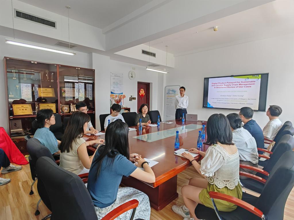 Abraham Zhang副教授本次讲座的主题为“数字产品护照在可持续与循环供应链管理中的作用:基于用例的结构化综述”。他围绕欧盟最新循环经济行动计划中的关键监管要素——数字产品护照(DPP),探讨了其在提升产品可追溯性、供应链透明度以及资源循环利用方面的潜力。讲座首先概述了DPP在政策与实践中的现状,随后基于对82个DPP供应链用例的结构化综述,系统分析了DPP在增强供应链可持续性和循环性方面的功能价值。基于综述结果,Abraham Zhang副教授讨论了DPP赋能可持续与循环供应链管理的理论与实践意义,并提出了该新兴研究领域优先考虑的研究需求,为与会者提供了深刻的学术启发。