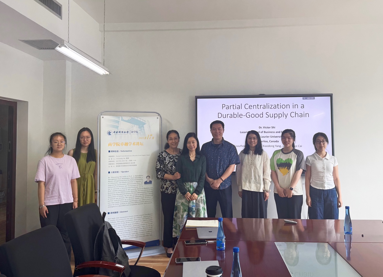 Chunming Shi老师本次讲座的主题为“Partial Centralization in a Durable-Good Supply Chain”。大多数供应链管理研究假设供应链结构要么是完全集中式,要么是完全分散式,却忽略了现实中常见的部分集中式结构。所谓部分集中,是指企业拥有其合作伙伴的部分(而非全部)产权。为弥补这一研究空白,本研究分析了一个耐用品供应链的情境,其中制造商拥有其下游零售商的一部分股权。研究发现,第一,部分集中式结构可以成为耐用品供应链的均衡结构;第二,制造商在零售商中的最优持股比例随着产品耐用性和决策周期的延长而下降,这意味着在产品更耐用或决策周期更长的情况下,完全分散式结构更有可能成为供应链的均衡形态;最后,研究探讨了企业和供应链集中化带来的战略性收益这一研究方向。