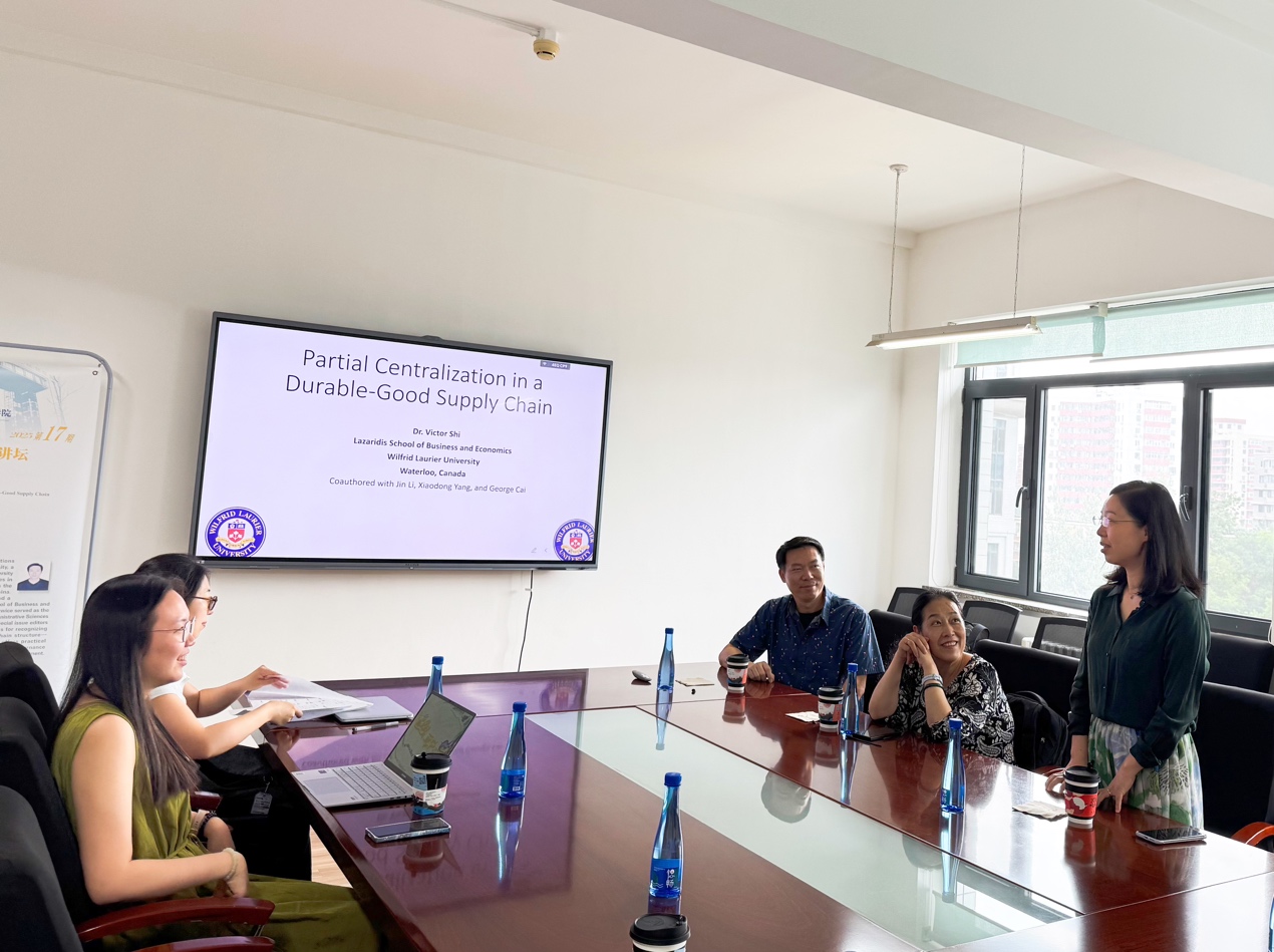 会议由德赢AC米兰官网供应链管理系教授晏妮娜老师主持。在讲座开始前,晏老师简要介绍了Chunming Shi老师的履历。施春明博士拥有美国华盛顿州立大学运营管理博士学位、国立大学工程硕士学位,以及中国科学技术大学工程与工商管理双学士学位。他现任加拿大威尔弗里德·劳里埃大学拉扎里迪斯德赢vwin官方入口的终身教授及博士生导师。施博士曾两次担任加拿大行政科学协会(Administrative Sciences Association of Canada)管理科学分会主席,并曾担任多本顶级学术期刊的特刊主编。