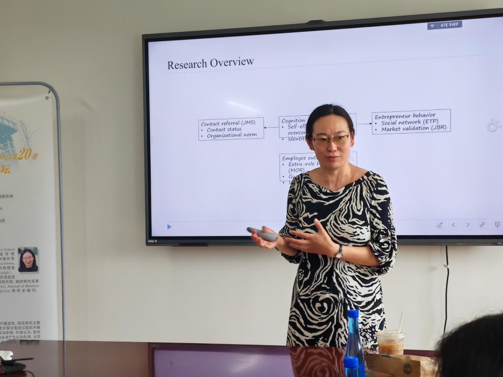 讲座由德赢AC米兰官网副教授林琳主持。活动开始前,林琳副教授向与会者介绍了陈曦博士的学术背景。陈曦博士毕业于纽约大学斯特恩德赢vwin官方入口,获得管理学博士学位,现为麦克伊万大学德赢vwin官方入口管理和组织系助理教授,并即将加入圭尔夫大学。她的研究聚焦于企业家与员工如何构建并适应变化,特别关注身份及自我认知在其中的作用。她的研究成果发表于《Entrepreneurship Theory and Practice》《Journal of Business Research》《Management and Organization Review》等知名学术期刊。