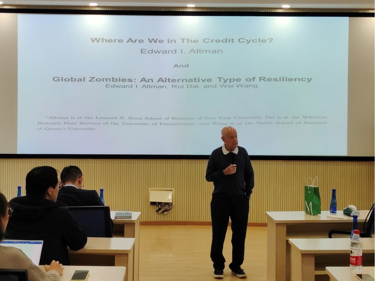 本次讲座由德赢vwin官方入口姚潇副教授主持。姚老师介绍了Edward Altman的履历。Edward Altman为纽约大学斯特恩德赢vwin官方入口Max L.Heine金融学荣休讲席教授,纽约大学索罗门研究中心信贷和债务市场研究项目主任,曾任斯特恩德赢vwin官方入口MBA项目主任12年。Altman教授于1968年提出Z-score模型,预测企业破产,本文被AFA评为Journal of Finance史上高被引论文前10名。Altman教授专注研究企业破产、高收益债券、不良债务和信用风险,在国际上享有盛誉,共在三大金融顶级期刊上发表论文24篇,其他论文160多篇,参与编辑和撰写《公司财务危机与破产》等24本专著。除此之外Altman教授也是许多学术期刊的编辑,发起举办国际风险管理会议(IRMC),大力支持信用评分与信用评级会议(CSCR)。Altman教授于2001年入选美国固定收益分析师协会名人堂,曾任金融管理学会(Financial Management Association)主席,并于2004年当选FMA会士。2005年,Altman教授被《财政与风险管理》杂志评选为“金融界100位最具影响力人物”之一。