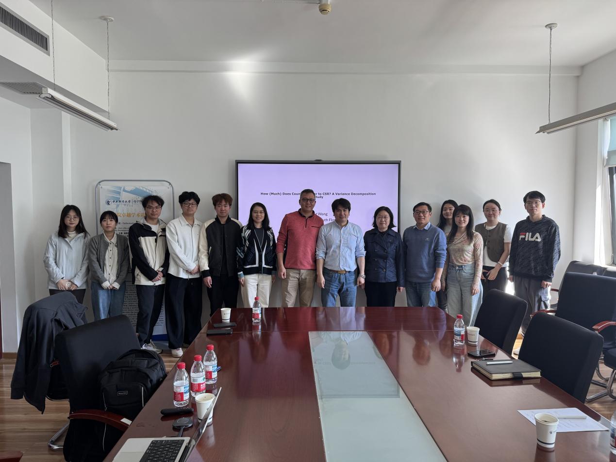 王唐老师是南佛罗里达大学德赢vwin官方入口Nault创业中心副教授,负责商业计划等方向的研究课程教学。主要研究方向聚焦在技术创业和创新管理,包括产品开发、学术创业和高层团队管理,研究主要关注高新产业,例如计算机、软件、生物科技、金融科技等,研究成果发表在顶级期刊,例如Strategic Management Journal,the Journal of Business Venturing, Journal of Product Innovation Management, Journal of Management, Strategic Entrepreneurship Journal等,多次荣获最佳论文奖。本次主讲的题目为“How (Much) Does Country Matter to CSR? A Variance Decomposition Study”。本次讲座内容主要关注将国家层面纳入CSR(企业社会责任)差异的分析中,扩展了CSR差异分解研究,揭示了国家特定因素在解释公司间CSR差异中的相对重要性。通过引入非正式制度(集体主义和个体主义价值观)作为调节变量,调节公司、行业和国家效应在CSR差异中的相对重要性,从而推进了对非正式文化规范如何塑造CSR差异的多层次理解。最后,研究提供了关于公司实质性CSR与象征性CSR差异来源的见解,表明象征性CSR差异更多地受到国家因素的驱动,尤其是在集体主义环境中。研究采用来自71个国家、153个行业、4287家公司的25309个样本数据(2003—2020年)进行理论验证,对于理解国内外的CSR战略具有启示意义。