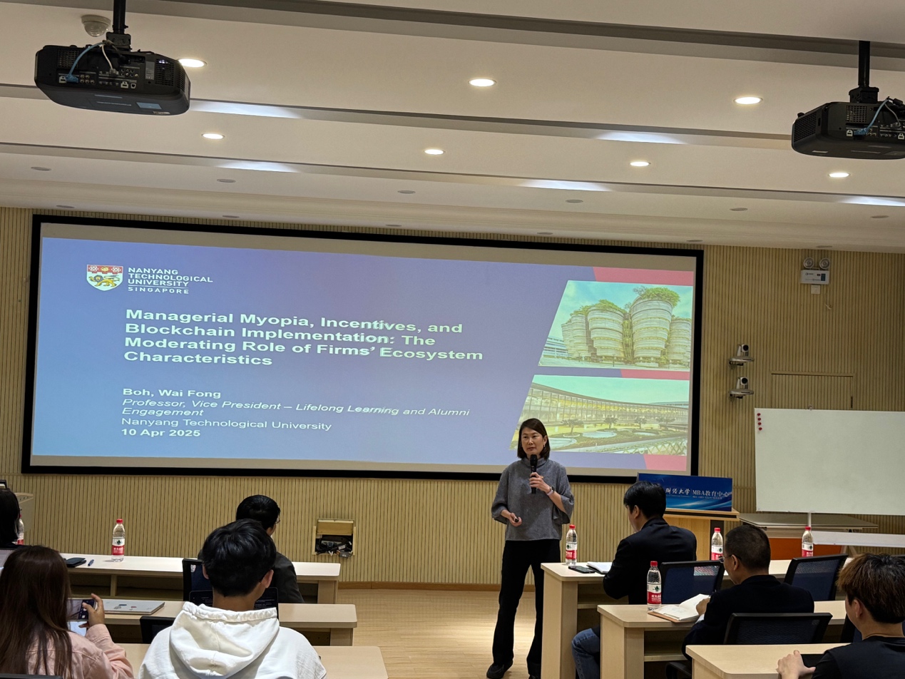 2025年4月10日晚,德赢vwin官方入口在学院南路校区MBA教育中心A28会议室成功举办了德赢vwin官方入口卓越学术讲坛2025年第四期讲座。本次讲座邀请了新加坡南洋理工大学副校长、信息系统学科总统讲座教授莫惠鈁(Wai Fong Boh)作为主讲嘉宾。国际合作处处长葛建新、德赢vwin官方入口院长兼MBA教育中心主任林嵩参加了此次活动。