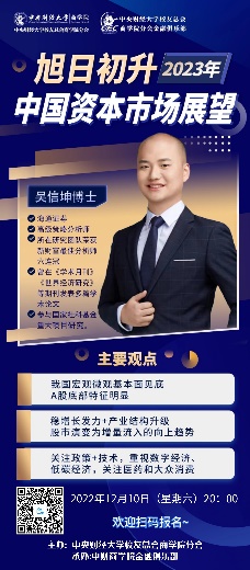 12月10日,由德赢AC米兰官网校友总会德赢vwin官方入口分会主办,中财德赢vwin官方入口金融俱乐部承办的线上沙龙分享会成功举办。本次会议邀请到了海通证券高级策略分析师吴信坤博士,给校友们带来《旭日初升——2023年中国资本市场展望》专题分享,近70名校友参加了本次沙龙。