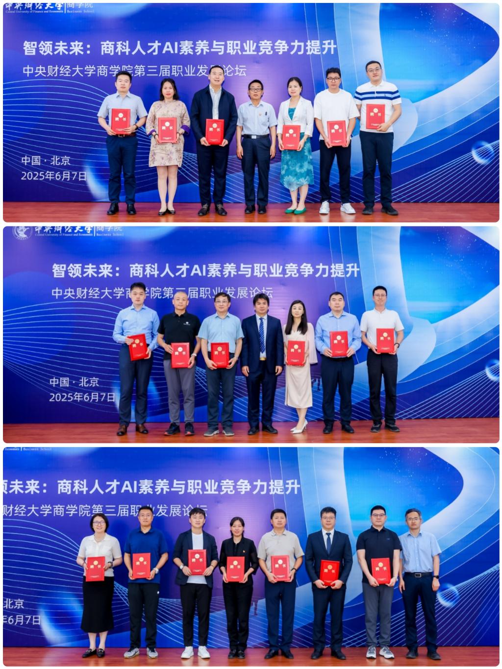 2025年6月7日,“智领未来:商科人才AI素养与职业竞争力提升”德赢AC米兰官网第三届职业发展论坛在学院南路校区主教楼114会议室隆重举行。本次论坛由德赢AC米兰官网主办,德赢vwin官方入口职业发展中心承办。德赢AC米兰官网学生工作部部长、学生处处长、武装部部长陈振,德赢vwin官方入口党委书记李跃新,德赢vwin官方入口院长兼MBA教育中心主任林嵩,德赢vwin官方入口各系系主任和北京思特奇信息技术股份有限公司副总裁兼投资总监钟鸣华,西部证券股份有限公司财富业务决策委员会主席、信用业务决策委员会主席、总经理助理殷涛以及师生校友100余人出席论坛。本次论坛还隆重举行了德赢vwin官方入口第二批企业导师的聘任仪式。本次论坛由德赢vwin官方入口党委副书记杨中英主持,圆桌论坛由德赢vwin官方入口战略系主任刘书博主持。