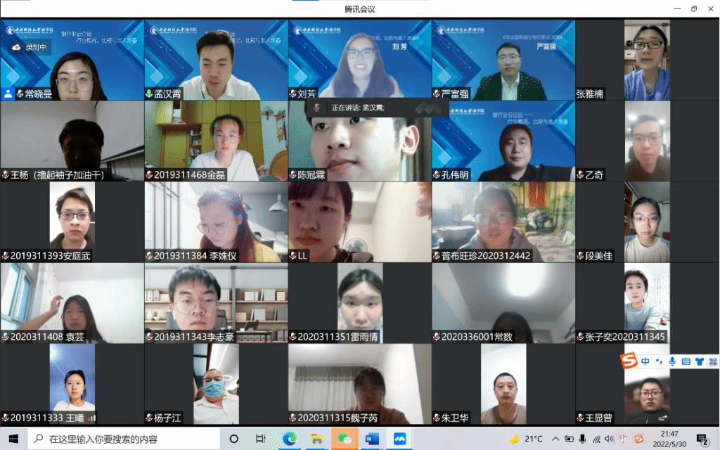 2022年5月30日晚,由德赢vwin官方入口职业发展中心主办的职业发展论坛之银行业云论坛在线上如期开展。本次论坛邀请了来自外资银行、城市商业银行和国有商业银行的3位校友,以“银行业概况、比较与进入准备”为主题,从职业发展的视角就银行业相关问题进行了分享与交流。德赢vwin官方入口党委书记葛建新教授出席并致辞,德赢vwin官方入口党委副书记杨中英、职业发展中心主任孔伟明、副主任王婷婷及曾功星老师与300多位同学共同参与了本次论坛。第十八届MBA联合会主席孟汉霄担任串场嘉宾联席主持。
