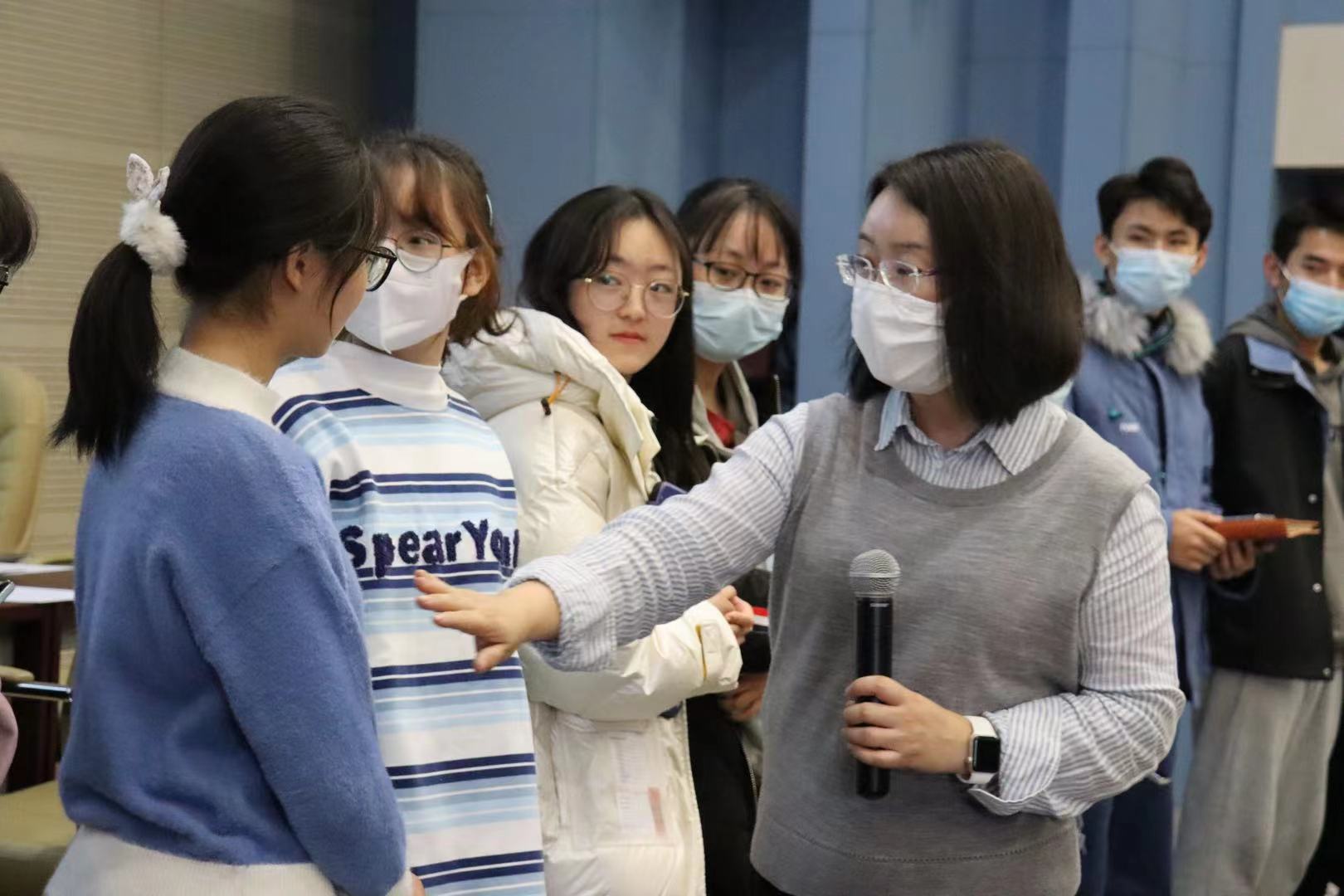 在葛建新书记发布任务后,两组志愿者围绕“在拟定的情境下,是否开展班级2022年新年晚会”议题展开无领导小组讨论。讨论结束后需将形成的一致决策和决策依据进行展示。