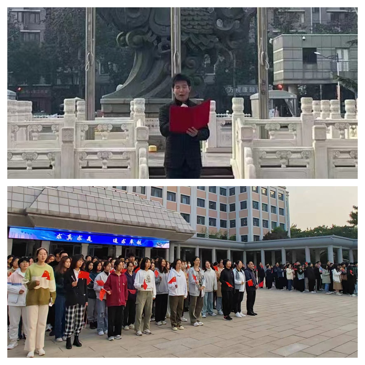 为深入学习贯彻习近平新时代中国特色社会主义思想和党的二十大精神,进一步加强2023级本科新生理想信念教育,2023年10月23日早上7点,德赢vwin官方入口和社会与心理学院在主教楼南广场联合组织开展了“青春向党,强国有我,争做新时代好青年——国旗下的讲话”主题教育,活动内容包括观看升旗仪式和开展主题活动两个部分。德赢vwin官方入口党委书记李跃新、党委副书记杨中英、辅导员龚莉云出席了本次活动,德赢vwin官方入口135名本科新生和社会与心理学院全体新生参与了活动。